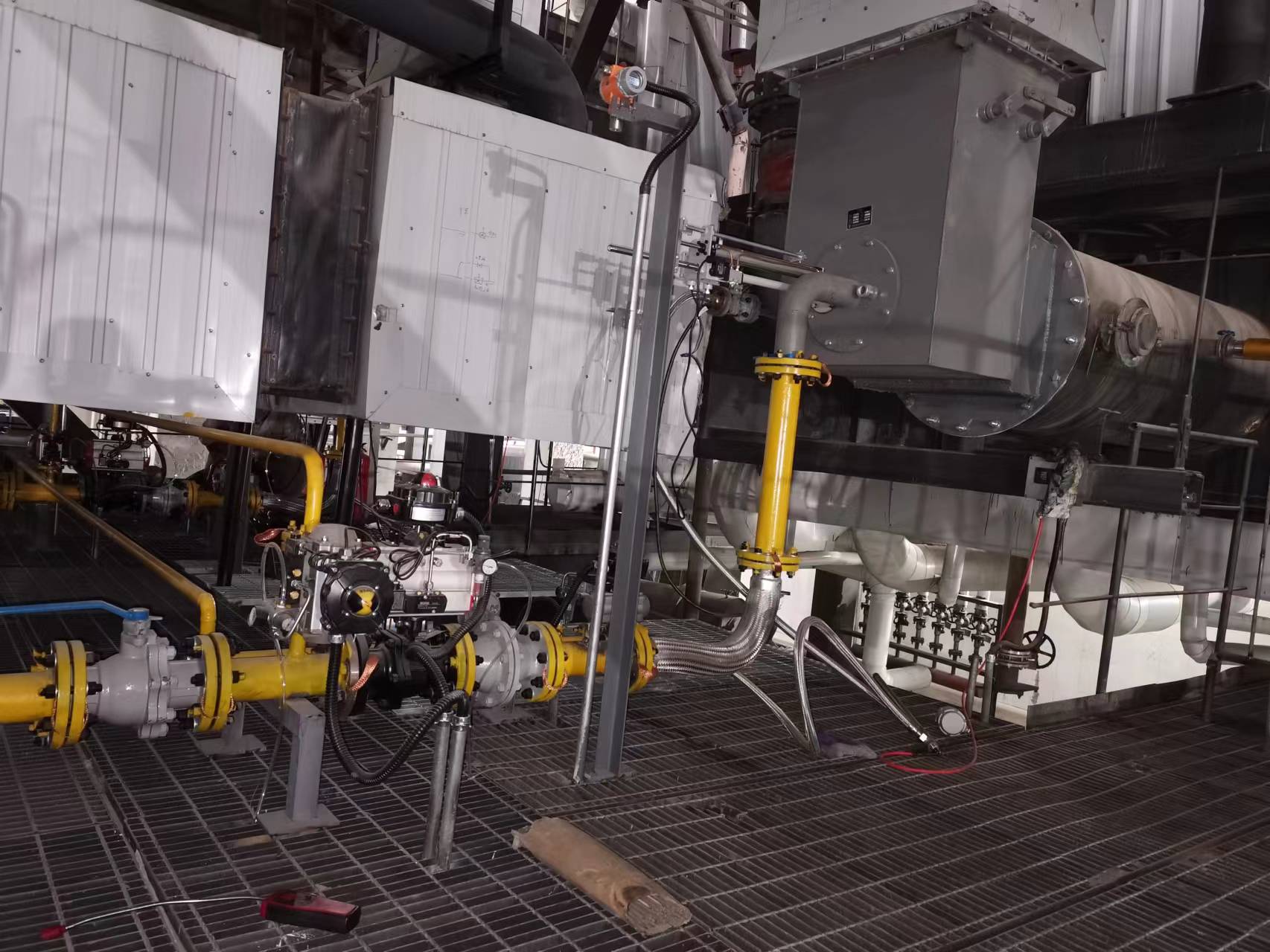 每臺鍋爐配兩臺氣燃燒器,床下布置,為了減少改造工作量,改造后的配合尺寸盡量與之前的保持一致;每臺燃燒器配一臺就地控制柜,用于轉(zhuǎn)接部分就地設(shè)備的控制接線,同時(shí)可以與DCS通訊;燃料閥組包含快關(guān)閥、調(diào)節(jié)閥、流量計(jì)、過濾器等設(shè)備,用于調(diào)節(jié)、控制燃燒狀況。