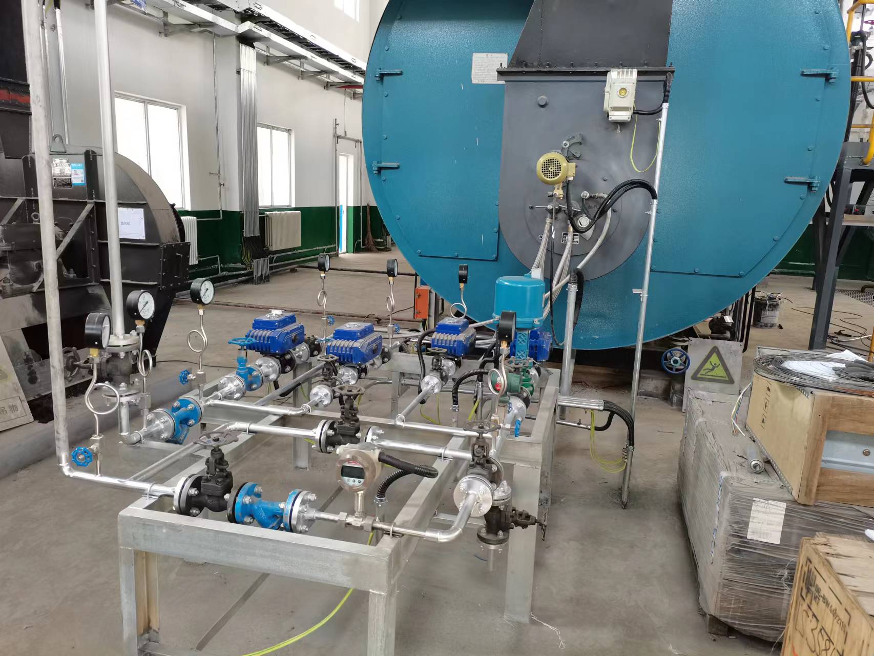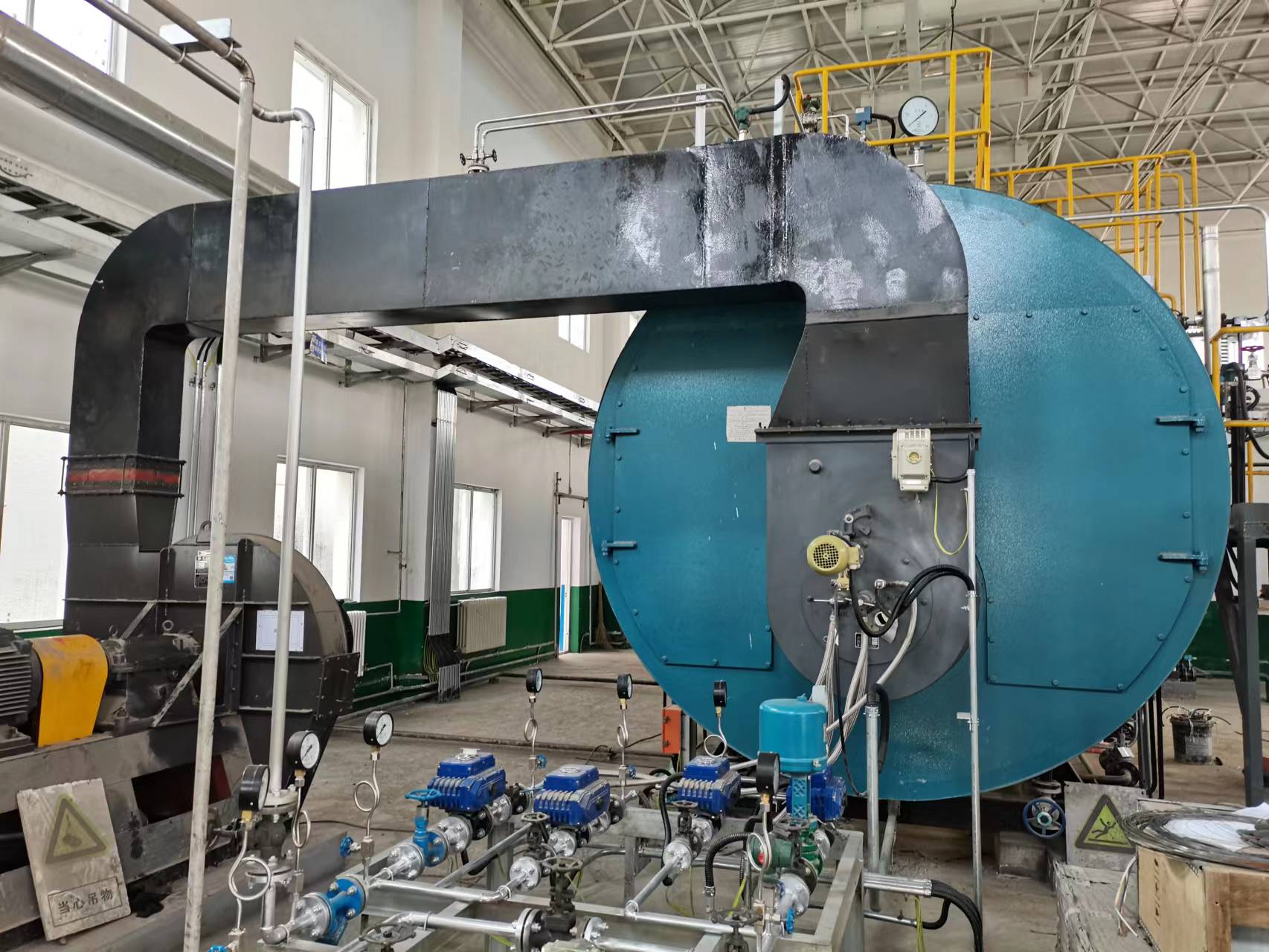 鍋爐為臥式內(nèi)燃、三回程濕背式結(jié)構(gòu),燃料為甲醇。常規(guī)一體機(jī)沒有適用這么大負(fù)荷鍋爐的成品,我公司定制設(shè)計滿足此鍋爐的甲醇燃燒器。